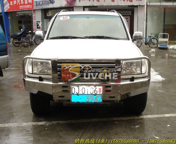 以下图片为丰田4700陆地巡洋舰泵把护灯前杠所拍图片,由于拍照环境与色差影响,图片与实物色彩可能会有些不相同,一切以实物为准!